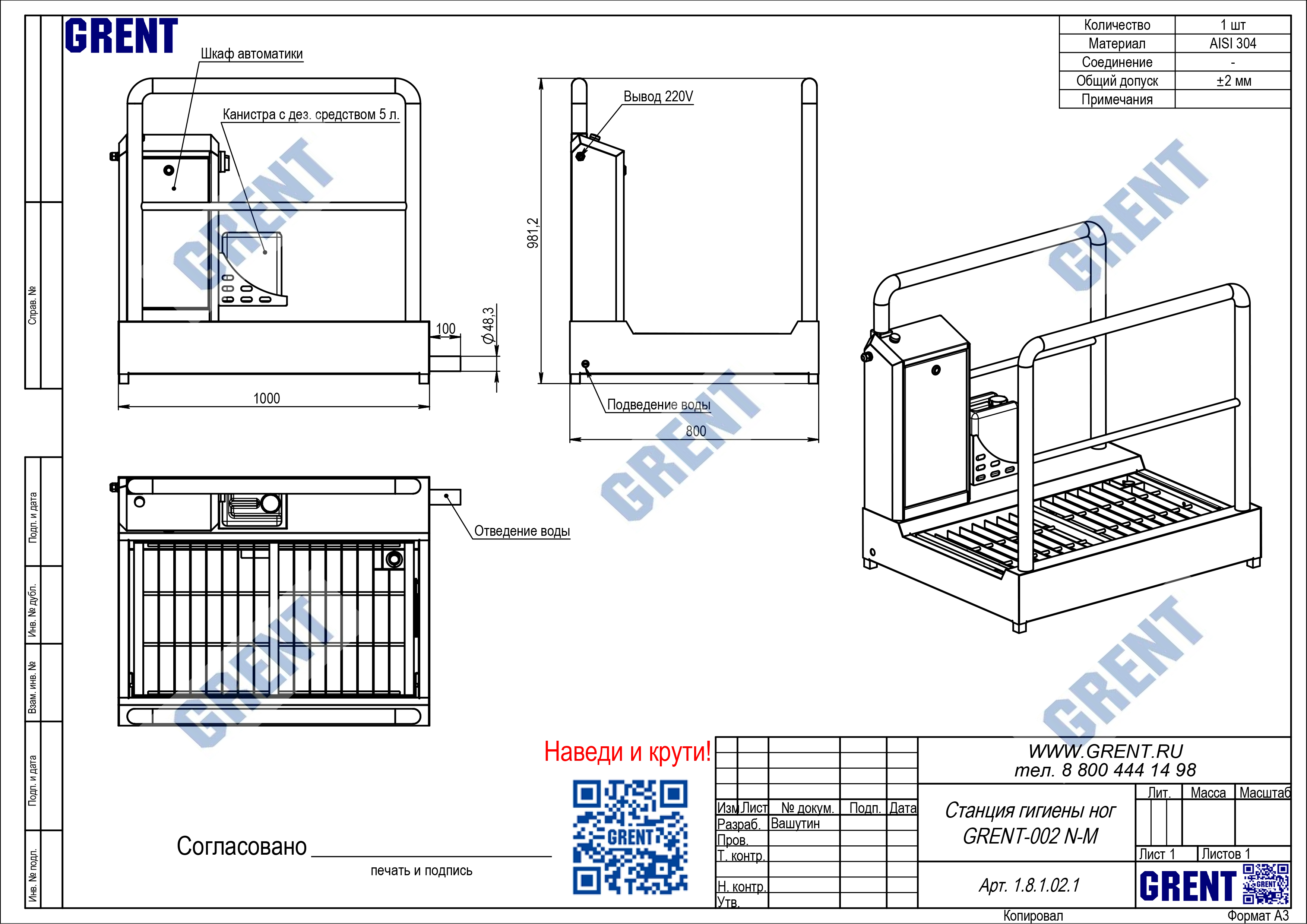 Станция гигиены обуви GRENT-002 N-M предназначена для дезинфекции подошв обуви персонала перед выходом (входом) из чистой зоны.