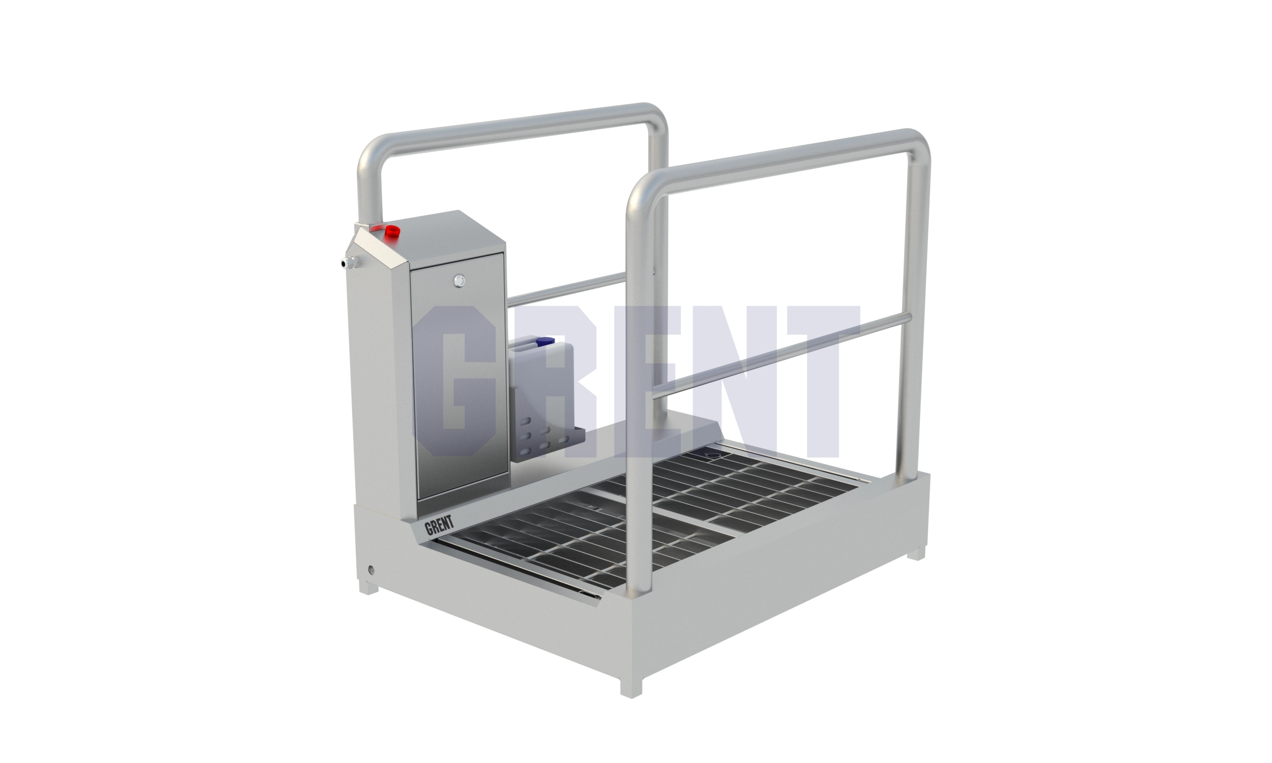 • Станция гигиены обуви оснащена каплесъёмной решеткой с анти-скользящей поверхностью для удаления излишков дезсредства.